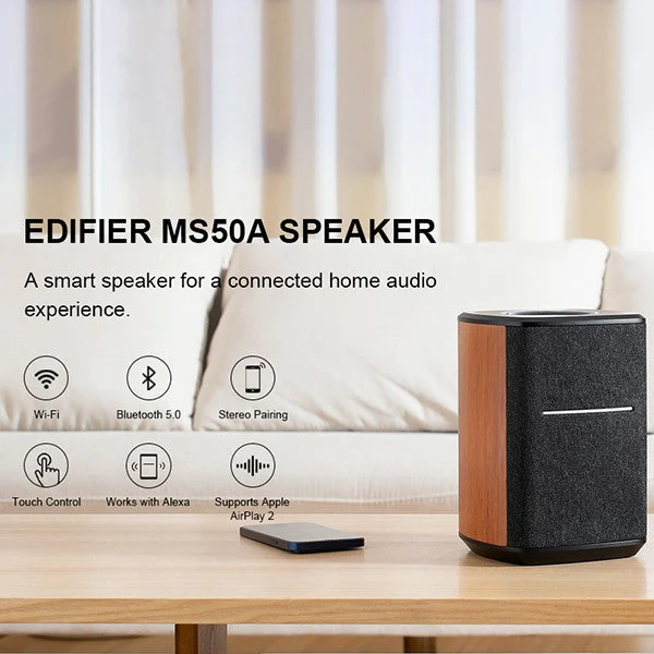 The Edifier MS50A is a powerful smart speaker with amazing sound quality that lets you stream music via WiFi with Spotify, Alexa Music, Apple Airplay 2, Bluetooth and much more.